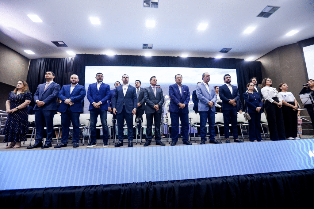 Adjuto Afonso esteve ao lado do governador em exercício, Roberto Cidade (União Brasil), dos senadores Eduardo Braga (MDB) e Omar Aziz (PSD), do ex-governador Wilson Lima (União Brasil), dos deputados federais Saullo Vianna (MDB) e Fausto Jr. (União Brasil), do vereador Diego Afonso (União Brasil), da juíza eleitoral Dr. Anagali Bertazzo, da sub-defensora pública geral do Amazonas, Dra. Sarah Lobo, além de deputados estaduais, na cerimônia oficial de abertura.