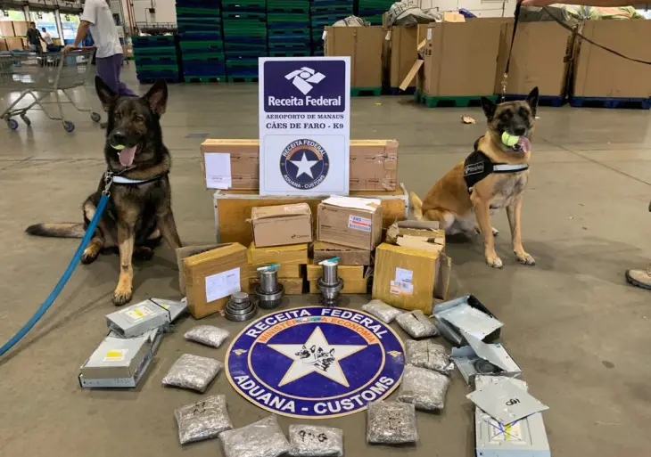 Após realizar procedimentos de análise de risco aduaneiro, o SEREP identificou encomendas saindo de Manaus com suspeitas de presença de drogas. Por conta dos indícios a Equipe K9 da Receita Federal em Manaus foi acionada e com a atuação dos agentes caninos Odin e Deco a suspeita da fiscalização foi confirmada.