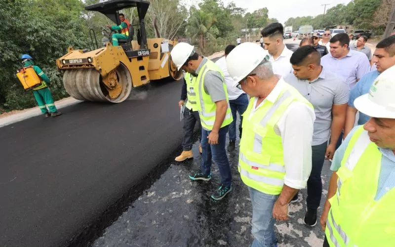O governador Wilson Lima vistoriou a obra de reforma e modernização da rodovia AM-010, nesta quinta-feira (21), no trecho do quilômetro 34 da estrada que liga Manaus a Itacoatiara. Com 119 quilômetros pavimentados com a primeira camada de asfalto, o projeto já alcançou 35% de execução.