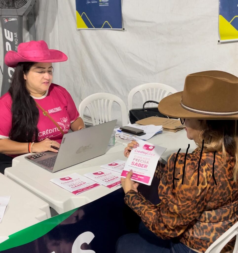 Orientações sobre como acessar o Crédito Rosa, programa de financiamento voltado às mulheres empreendedoras, são um dos serviços oferecidos pela Secretaria de Estado da Assistència Social (Seas), na 45ª Exposição Agropecuária do Amazonas (Expoagro), que está sendo realizada, até domingo (10), no Parque Multiuso Eurípedes Ferreira Lins, localizado no quilômetro 02 da BR-174. Apenas no primeiro dia de evento, aberto na quarta-feira (5), foram realizados 10 atendimentos.