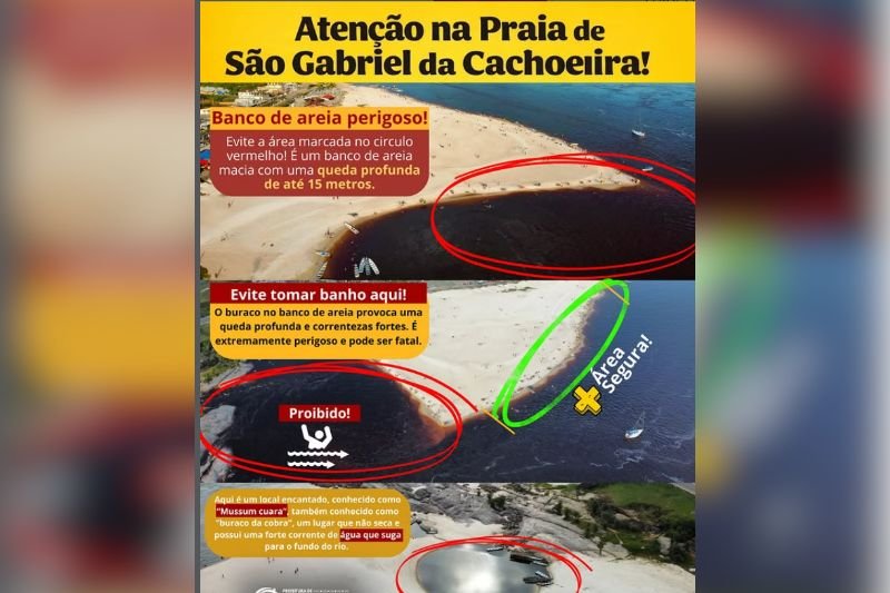 A Prefeitura de São Gabriel da Cachoeira (a 853 quilômetros de Manaus) emitiu nesta terça-feira (16), um alerta para banhistas sobre os riscos de se aproximar de uma área do Rio Negro na orla do município.