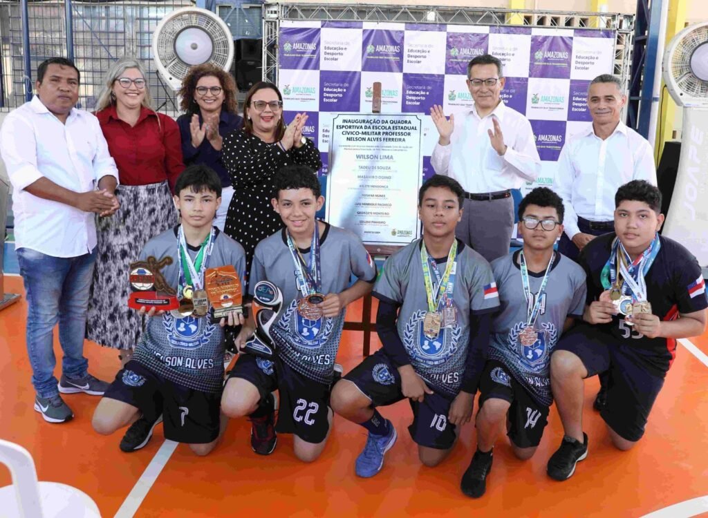 O Governo do Amazonas, por meio Secretaria de Estado de Educação e Desporto Escolar, e em parceria com o Consulado-Geral do Japão, inaugurou, nesta quinta-feira (15), a quadra da Escola Estadual (EE) Cívico-Militar Professor Nelson Alves Ferreira, no bairro Betânia, zona sul de Manaus. Com um investimento de mais de R$ 500 mil, o novo espaço beneficiará 874 estudantes da unidade de ensino.