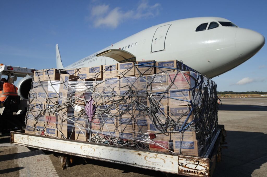 A ajuda humanitária foi encaminhada em um avião da Força Aérea Brasileira (FAB), com previsão de que sejam enviados mais 70 mil copos no decorrer das próximas semanas.