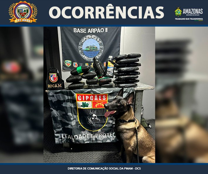 A Polícia Militar do Amazonas (PMAM), em operação na Base Fluvial Arpão 2, apreendeu, na madrugada desta quinta-feira (08), 35 quilos de entorpecentes, incluindo dois litros de óleo de maconha (BHO). Um homem de 29 anos foi preso em flagrante por tráfico de drogas.