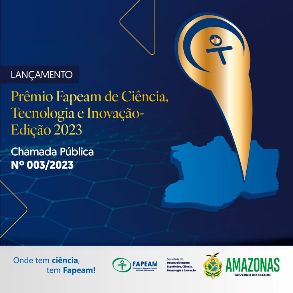 Confira a chamada pública do Prêmio Fapeam de CT&I-Edição 2023 em: https://www.fapeam.am.gov.br/editais/edital-de-chamada-publica-n-o-0032023-premio-fapeam-de-ciencia-tecnologia-e-inovacao-edicao-2023/