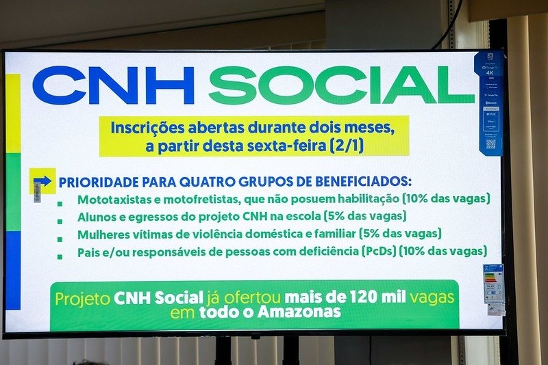Criado em 2021, o CNH Social já ofereceu mais de 120 mil vagas nos dois primeiros ciclos do programa, sendo 40 mil no primeiro e 80 mil no segundo, consolidando-se como uma das principais políticas públicas de inclusão social e geração de renda do Governo do Amazonas.