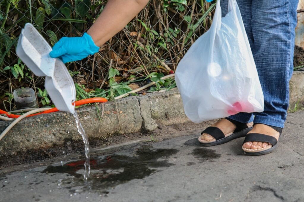 - Evitar água parada em pneus, latas, garrafas vazias ou calhas;