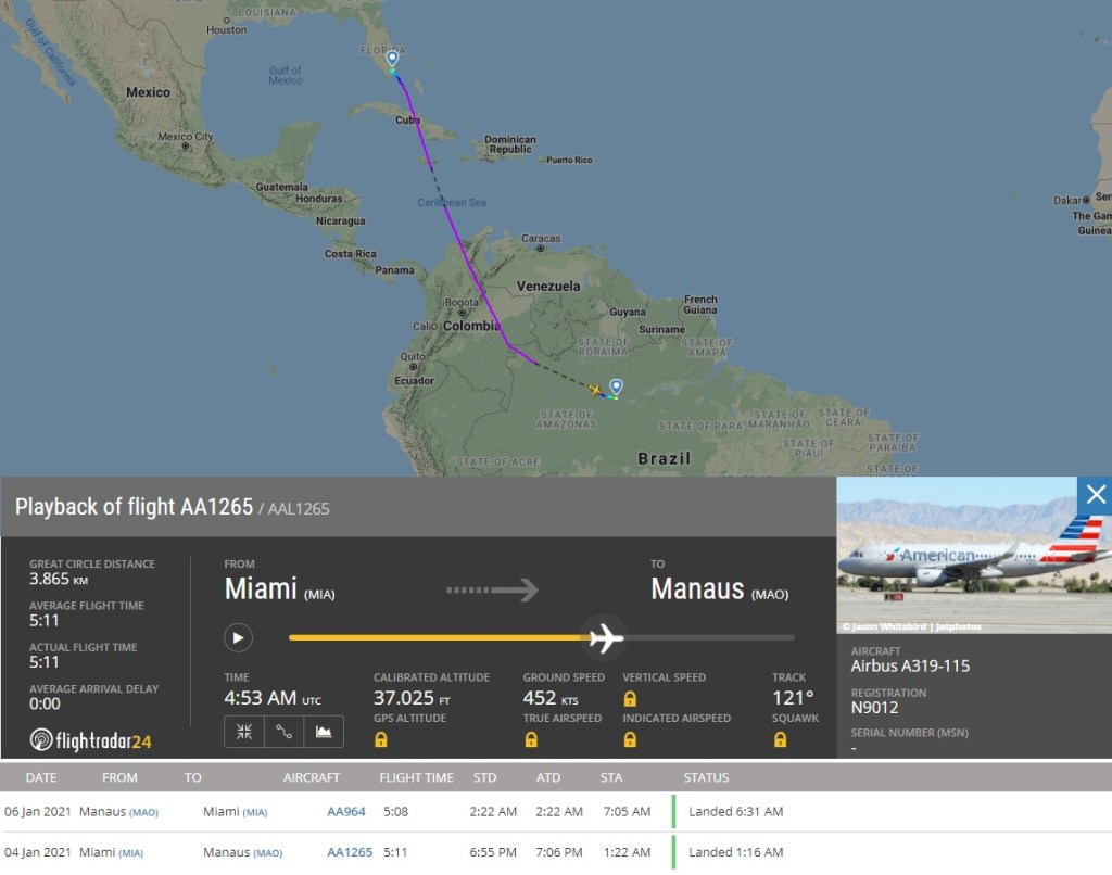 A partir desta semana, o voo Miami-Manaus passa a operar, inicialmente, cinco vezes por semana com aeronaves Airbus A319 de 138 assentos, pousando no Brasil nas madrugadas de segunda, terça, quinta, sábado e domingo. O voo está programado para chegadas ao Aeroporto Internacional de Manaus – Eduardo Gomes à 1h20 do horário local.