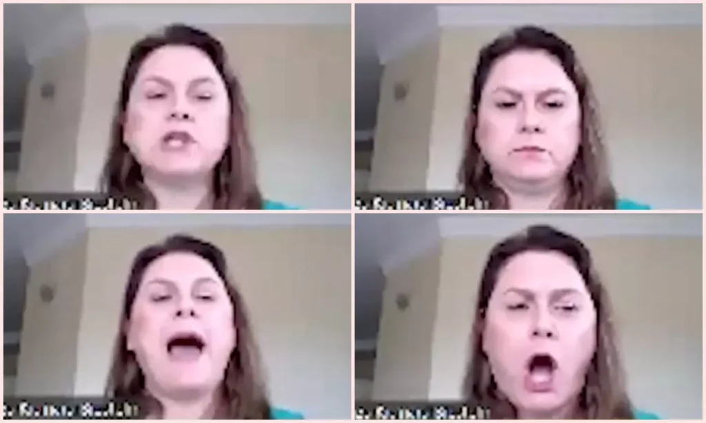Visivelmente alterada, a juíza substituta interrompe o relato para explicar que caso a testemunha não fale o termo que ela quer, retirará o depoente da audiência. A testemunha tenta continuar a falar, porém a juíza grita novamente o chama de “bocudo” e em seguida o exclui da videoconferência.
