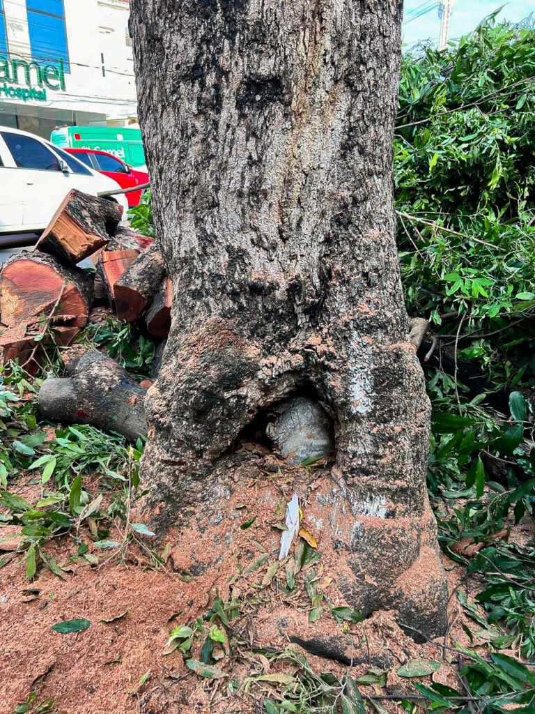 A Prefeitura de Manaus realizou, na última quinta-feira (4), o manejo preventivo em duas árvores com risco de queda, localizadas na Avenida Joaquim Nabuco, centro da cidade. Após análise técnica realizada pela Secretaria Municipal de Meio Ambiente (Semmas) foi constatado que dois oitizeiros estavam com seus troncos totalmente deteriorados, apresentando podridão avançada, com risco de tombamento e possíveis danos à vida e ao patrimônio.