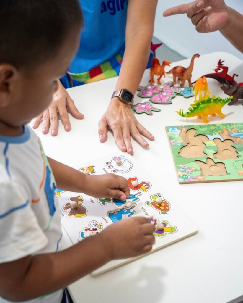 A fonoaudióloga Sylvana Freitas explica que o primeiro passo é acolher as famílias e mostrar que o desenvolvimento da fala segue etapas. “Antes da fala, existem etapas essenciais: manter contato visual, compreender comandos, sentar. Nosso trabalho é construir esse caminho. Se a criança gosta de animais, usamos os sons deles como recurso. Começamos com sílabas simples, de forma lúdica e prazerosa, baseada nos interesses da criança”, destaca.