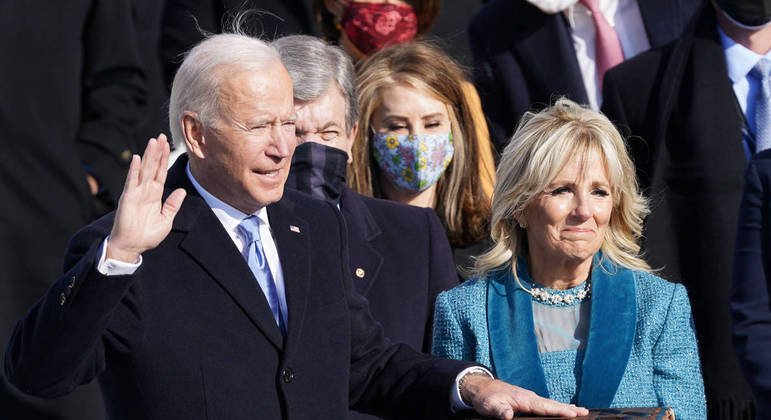 O democrata Joe Biden, de 78 anos, tomou posse nesta quarta-feira (20) como o 46º presidente dos Estados Unidos, sucedendo o republicano Donald Trump. Em seu discurso inaugural, o democrata pediu união para derrotar o extremismo e restaurar a alma americana.