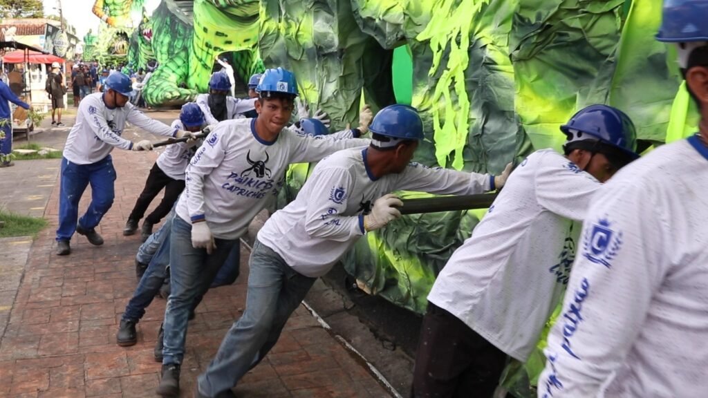 Nos galpões do Boi Caprichoso, aproximadamente, 350 artistas estão diretamente envolvidos na criação das alegorias e adereços que compõem o espetáculo do Festival de Parintins. A equipe, que inclui artistas plásticos, soldadores, pintores, entre outros profissionais, contam com equipamentos individuais de proteção (EPIs), que foram doados pelo Governo do Amazonas, em março deste ano. Os kits são compostos por camisa, calça, capacete, luvas e botas.