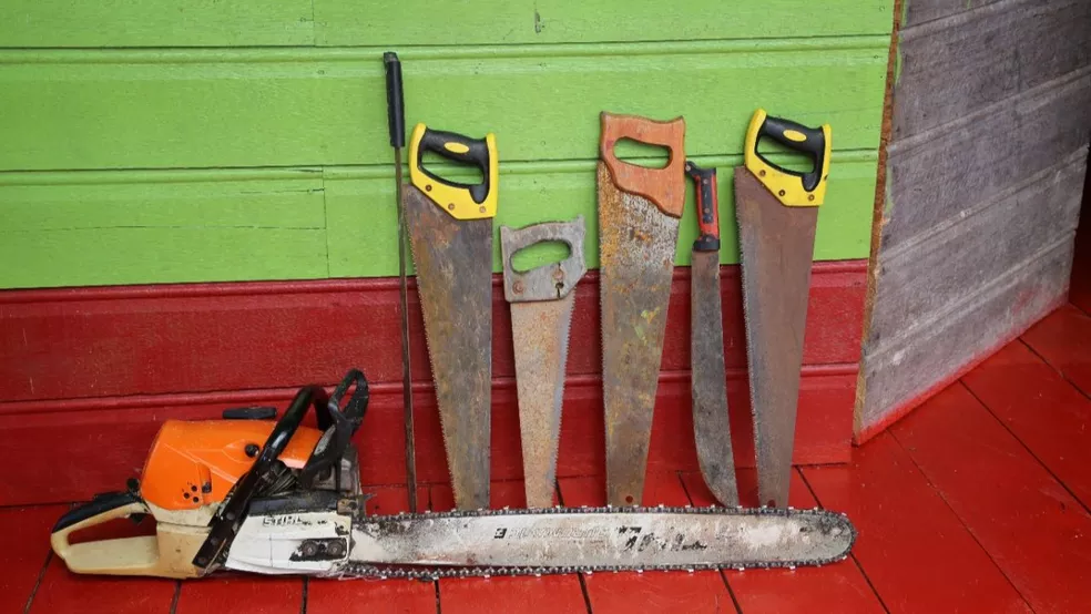 Além das canoas, entre os materiais apreendidos estão facões e uma motosserra.