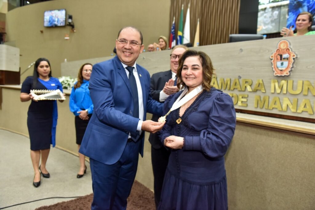 O vereador também destacou o trabalho desenvolvido por Maria do Carmo Seffair. “Tem uma brilhante carreira acadêmica e uma grande atuação. É idealizadora do Centro Preparatório Jurídico (CPJUR) e atua como mantenedora da Faculdade Santa Teresa e da Rádio Rios de Comunicação, além de reitora da Fametro. Sempre em busca de novos conhecimentos e desafios. Sua determinação em transformar sonhos em realidade é inspiradora. Sua liderança, sabedoria e paixão são uma bússola que nos guia em direção a um futuro melhor”, discursou o vereador.