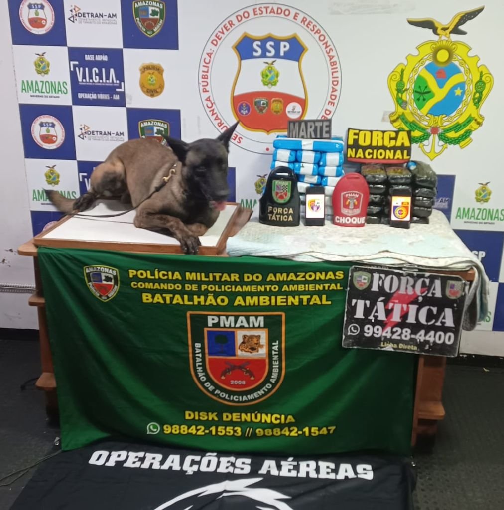 O barco vinha do município de Tabatinga (a 1.108 quilômetros a oeste de Manaus) com destino final a capital amazonense. A droga foi encontrada pelo cão de faro ‘Xerife’ e está avaliada em R$ 2 milhões.