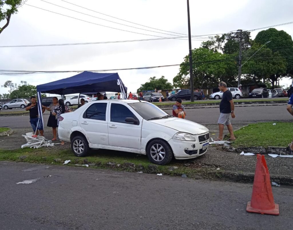 Um casal ficou ferido depois de ser atropelado enquanto tomava café em uma banca na Avenida Noel Nutels, na Cidade Nova, na Zona Norte, na manhã deste domingo (5).