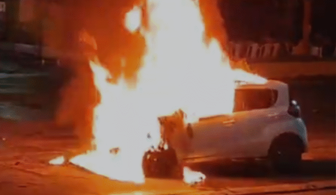 Um veículo modelo Fiat Mobi, de cor branca, ficou completamente destruído após ser consumido por um incêndio na madrugada desta terça-feira (23), na Avenida Pedro Teixeira, bairro Dom Pedro, zona centro-oeste da capital. As chamas se espalharam rapidamente, atingindo toda a estrutura do automóvel.