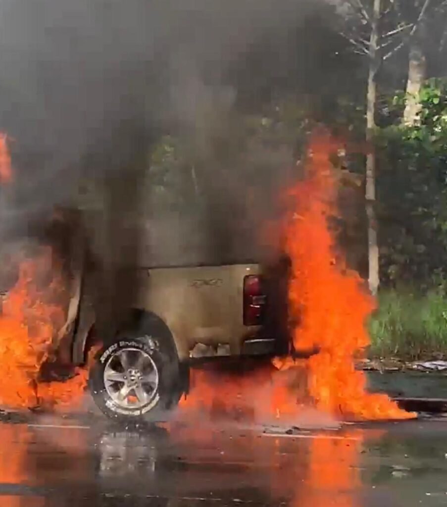 Nesta segunda-feira (22), também um outro veículo, uma pick-up,foi completamente consumido pelo fogo, na avenida do Turismo, zona oeste de Manaus.