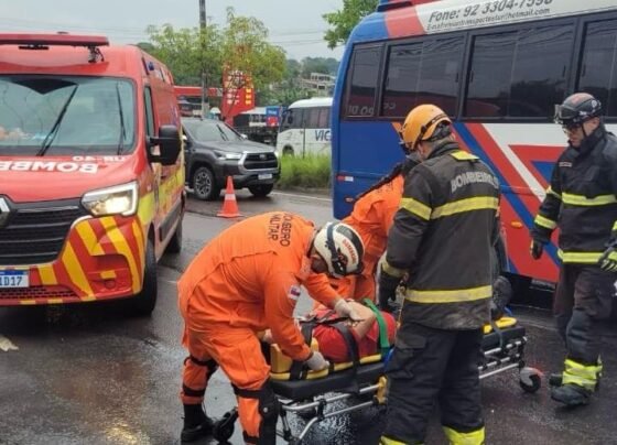 Bombeiros resgatam dez vítimas após colisão entre ônibus em Manaus