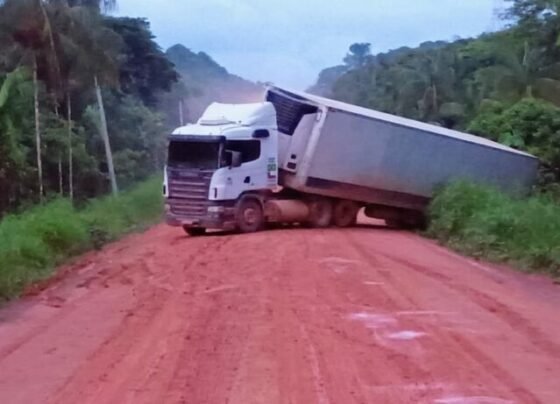 Vídeos: carreta tomba e interdita estrada na BR-319