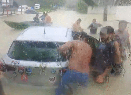 Chuva forte transforma avenida em rio em Manaus