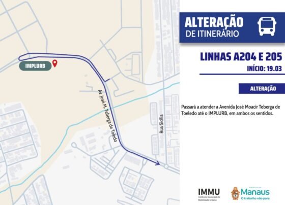 A Prefeitura de Manaus, por meio do Instituto Municipal de Mobilidade Urbana (IMMU), informa que as linhas de ônibus A204 (Parque Mosaico/ Planalto/E2-Arena)…
