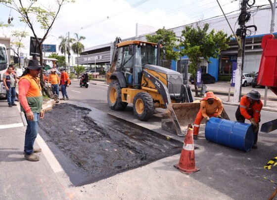 Avenida Djalma Batista tem obras no canteiro e na pista