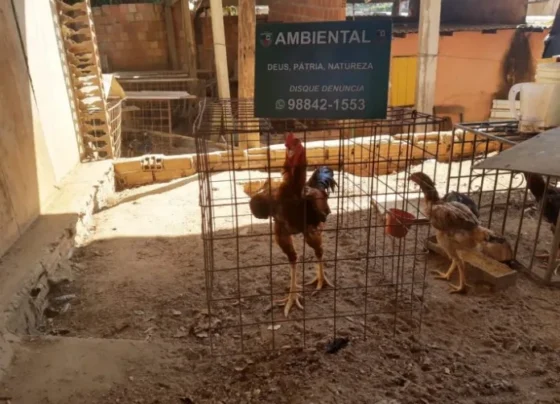 Policiais encontraram dois galos em luta, além de outros galos feridos com vestígios de sangue nas patas, asas e cabeça.…