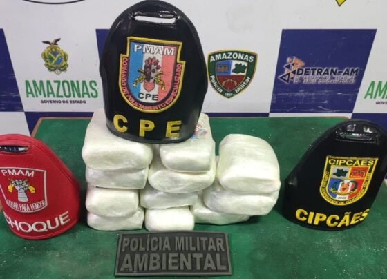 Policiais militares do Amazonas embarcados na Base Fluvial Arpão 1 apreenderam 100 kg de maconha do tipo skunk e pasta-base…