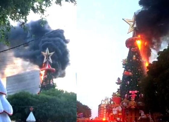 Árvore de Natal de 23 metros pega fogo em Manaus