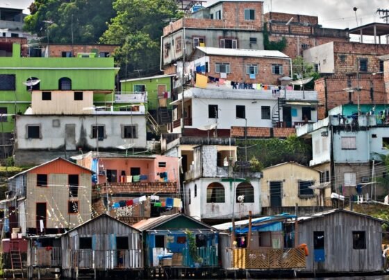A poluição dos igarapés de Manaus contrasta com a floresta. Nas enxurradas, é comum haver “rios de plásticos” em meio…