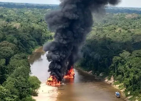 PF e IBAMA destroem 23 balsas de garimpo em Autazes