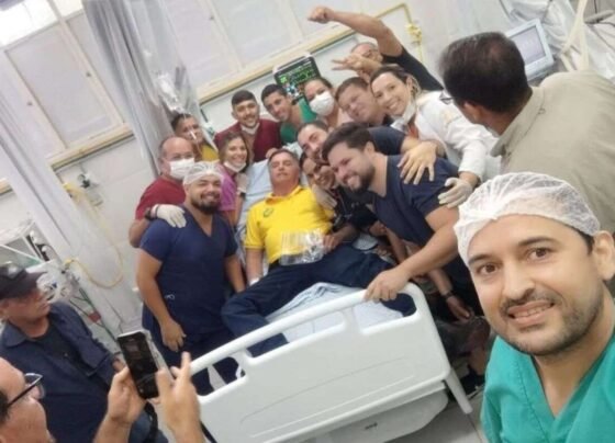 Bolsonaro é tietado por enfermeiros durante internação em Natal