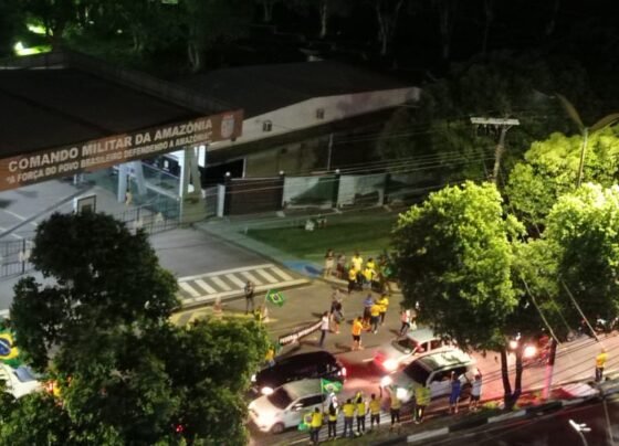 Manifestantes pró-Bolsonaro e contra a vitória de Lula, no último domingo, fazem um buzinaço neste momento em frente ao Comando…