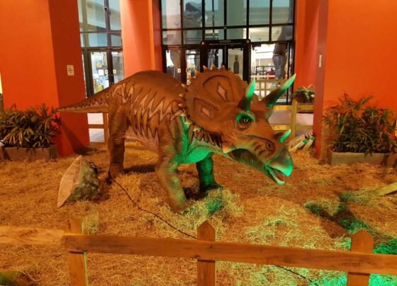 Exposição leva dinossauros gigantes para dentro de shopping em Manaus