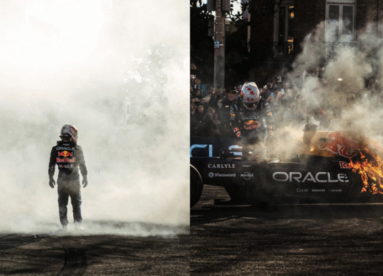 O piloto japonês Yuki Tsunoda passou por um susto durante um evento de demonstração da Red Bull Racing, em San…