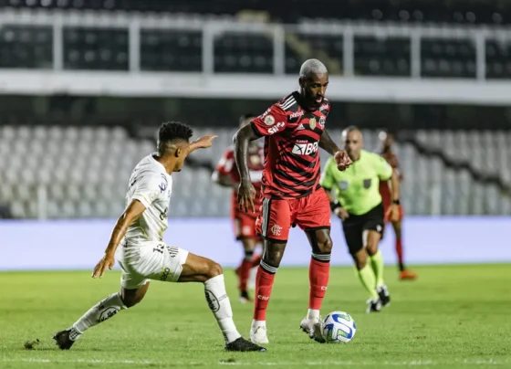 Em jogo movimentado, com cinco gols, o Flamengo venceu o Santos fora de casa, por 3 a 2, na Vila…