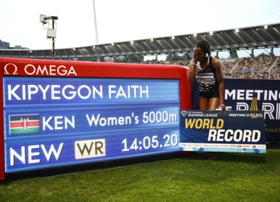 A queniana Faith Kipyegon quebrou, nesta sexta-feira (9), o recorde mundial dos 5000m do atletismo, ao completar a prova em…