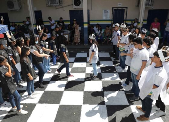 Escola estadual promove ‘xadrez humano’ como prática pedagógica