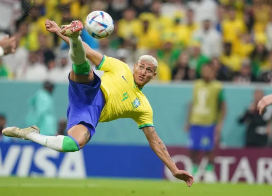 O gol de Richarlison na vitória do Brasil por 2 a 0 contra a Sérvia, na Copa do Mundo, é…