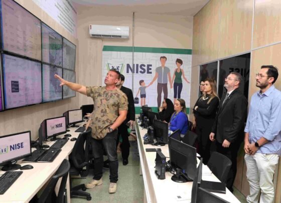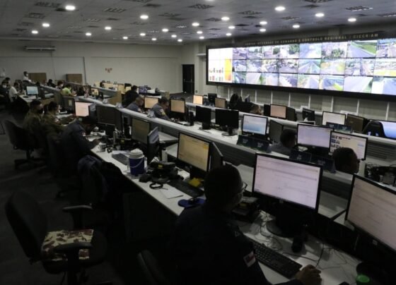 A sala de monitoramento do Núcleo de Inteligência em Segurança Escolar (Nise) em Manaus, implantado em abril deste ano com…