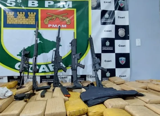 Policiais do 5º Batalhão de Polícia Militar (BPM/Coari) aprenderam 849,85 km de maconha prensada, três fuzis, uma metralhadora, uma escopeta…