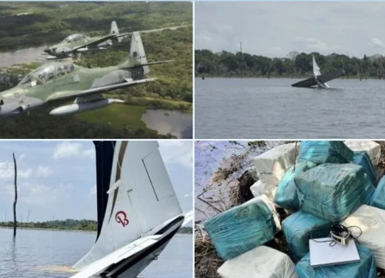 Avião venezuelano interceptado pela FAB cai em represa do Amazonas com 380kg de maconha