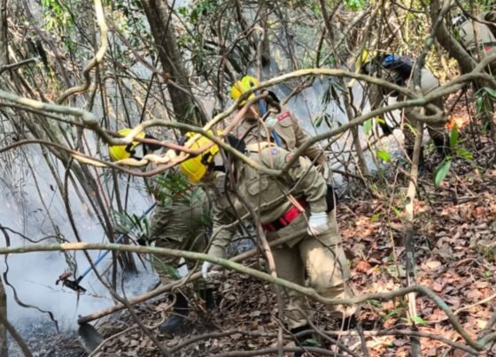 Bombeiros montam força-tarefa com mais de 50 homens para apagar incêndio florestal em Iranduba