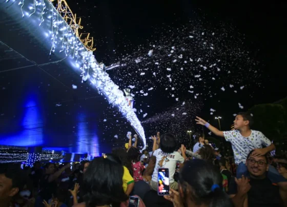 Túnel com chuva de neve em Manaus volta a funcionar no calçadão da Ponta Negra