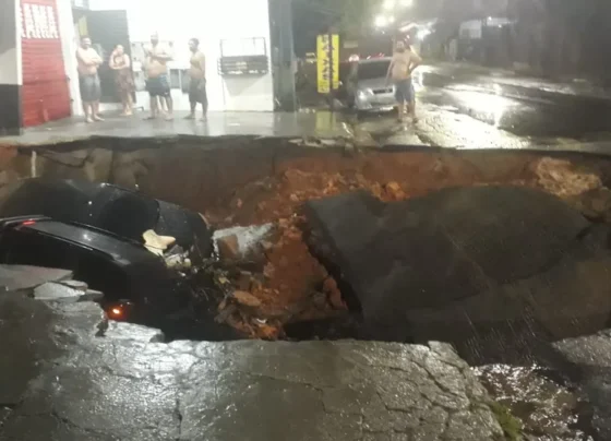 Chuva provoca inundação e abre cratera que engole carros em Manaus