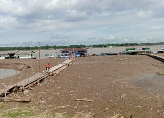 Nesta terça-feira (24), o Rio Negro chegou a 14,30 metros, faltando 1,60 metros para atingir seca histórica. Margem de terra,…