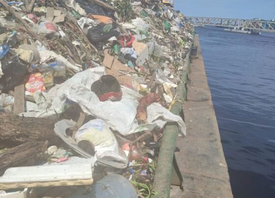 Garis encontram perna em lixo na orla de Manaus