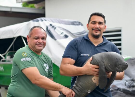 Um filhote de peixe-boi-da-Amazônia (Trichechus inunguis), vítima de uma tentativa de caça ilegal, foi resgatado pelo Instituto de Proteção Ambiental…